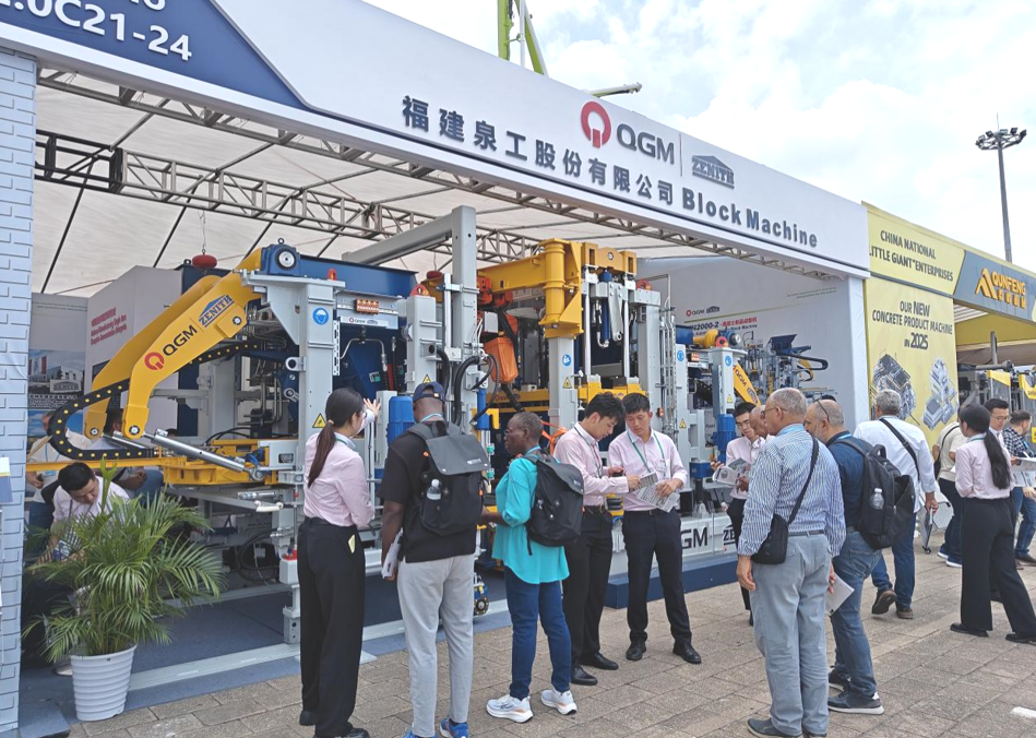 Tại Hội chợ Canton lần này, Công ty TNHH Quangong đã trưng bày các loại máy sản xuất gạch không nung và thiết bị dây chuyền sản xuất gạch bê tông mới nhất. Gian hàng đã thu hút rất đông người tham gia, với khu vực trưng bày khối bê tông góc cạnh thu hút người mua toàn cầu dừng lại và tìm hiểu—đặc trưng bởi hoạt động sản xuất không cần lò nung, mức tiêu thụ năng lượng thấp và tính bền vững về môi trường. Triển lãm dây chuyền sản xuất gạch thông minh ZN Series cũng thu hút được sự chú ý đáng kể. QuanGong đã tích hợp hoạt động và bảo trì từ xa với chẩn đoán đám mây vào thiết bị sản xuất gạch của mình, cho phép người dùng hiểu sâu hơn về những thành tựu mới nhất của công ty trong việc tái chế tài nguyên chất thải rắn và công nghệ sản xuất gạch có hàm lượng carbon thấp.